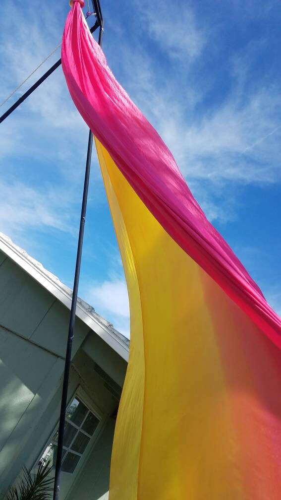 -Fabric is 40 Denier Nylon Tricot and has been break tested and approved for aerial use! (tested by Fight or Flight Entertainment) The fabric is commonly known as low stretch, is used widely for aerial yoga and loved by both beginner and professional aerialists! Fabric is 108" inches wide but can be stripped to a smaller width with sharp fabric scissors!